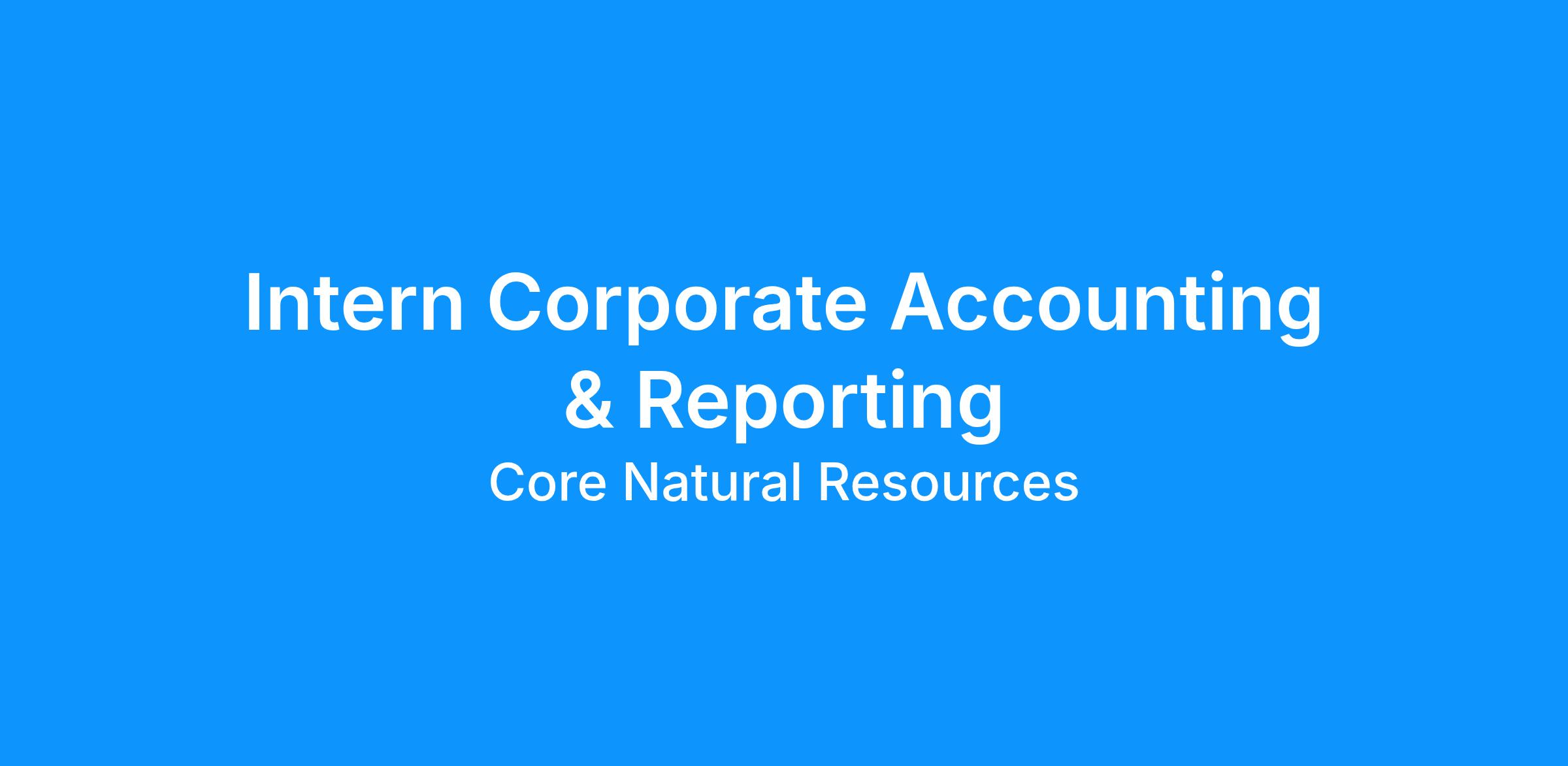 Position Summary Our Corporate Finance team is seeking a motivated and detail-oriented Accounting Intern to support day-to-day financial operations and gain hands-on experience in a fast-paced business environment.  This internship is designed for students who want to deepen their understanding of corporate accounting, financial reporting and internal controls while contributing to meaningful projects that impact the company.   Target Responsibilities Accept, embrace and promote the following core values of Core Natural Resources, Inc.: Safety and Sustainability, Continuous Improvement  Assist with monthly and quarterly closing activities  Prepare and analyze financial reports, account reconciliations and journal entries Assist with research, data entry and recording and maintaining accurate and complete financial records Participate in audits by organizing documentation and supporting audit requests Handle sensitive or confidential information with honesty and integrity Take on additional tasks or projects to learn more about accounting and office operations Required Skills and Experience Pursuing a Bachelor’s degree in Accounting, Finance, Business Administration or a related field Satisfactory completion of introductory accounting courses and a strong understanding of accounting principles Strong organizational and analytical skills with a detail-oriented and task-focused outlook Working knowledge of Excel Excellent verbal and written communication skills Strong interpersonal skills and the ability to collaborate in a team environment Motivation and strong desire to take on new challenges and learn as much as possible