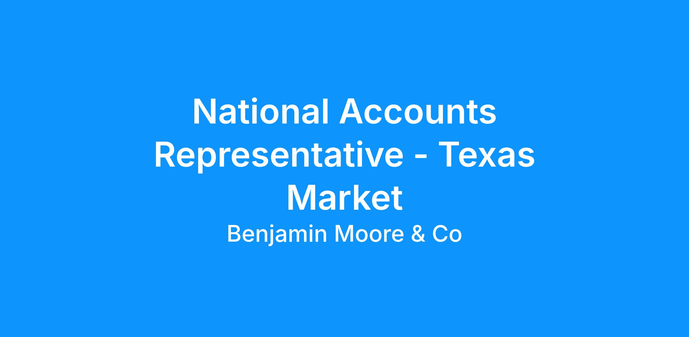 Benjamin Moore & Co. is currently looking for an ambitious and self-motivated National Account Representative to play a critical role in building relationships with our clients and be able to identify new opportunities to increase sales. You will oversee the development, implementation, and execution of the national account (NA) sales strategy in North America primarily focusing on the franchise painter segment, national account brands, and the architect and design (A&D) segment. Geographical coverage will include, but is not limited to, key franchisee painters, National Accounts, and A&D firms. This role covers the Texas market, and the ideal candidate will be based within 30 miles of Dallas, Texas.