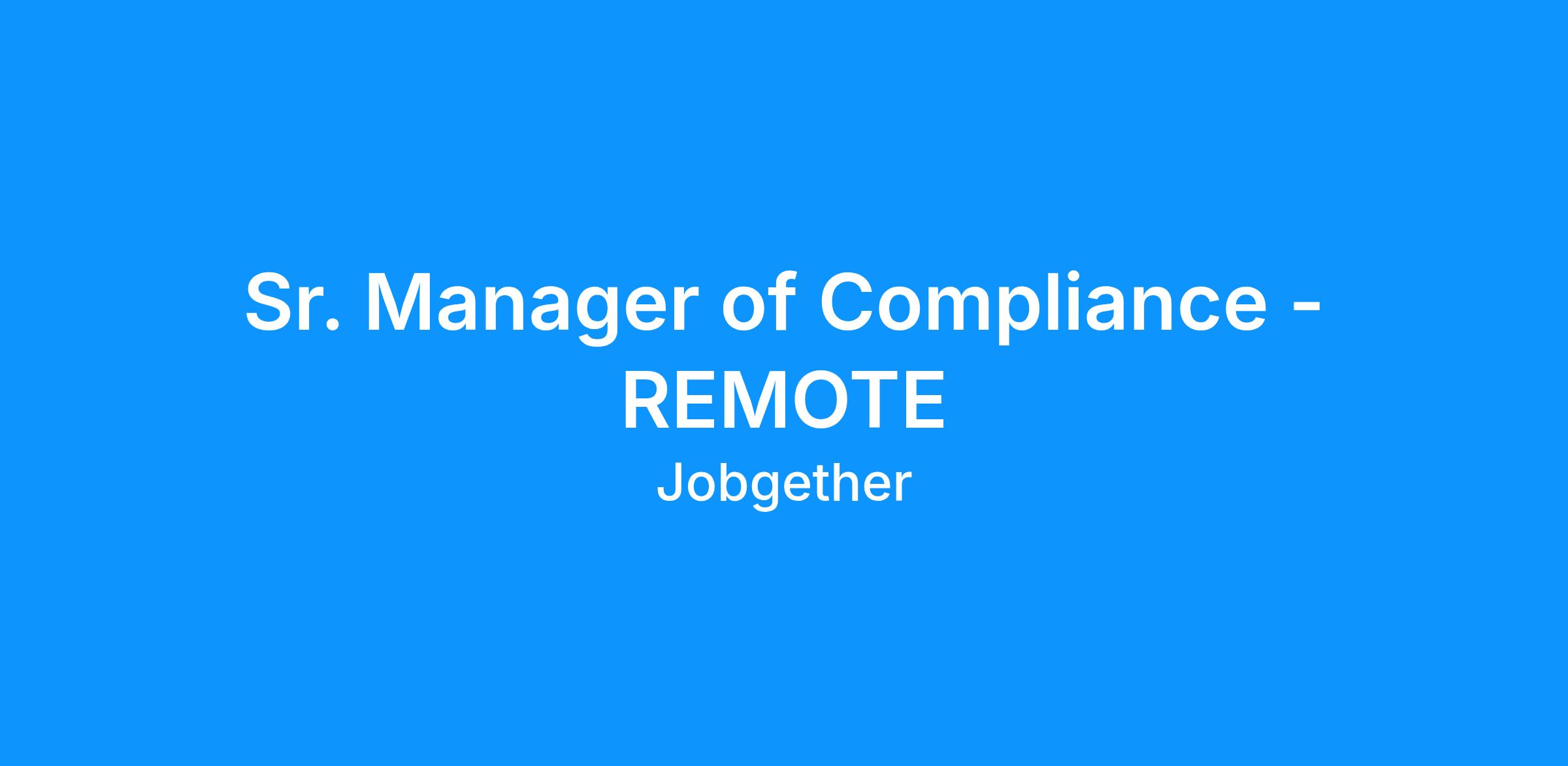 This position is posted by Jobgether on behalf of a partner company. We are currently looking for a Manager, Compliance - REMOTE. In this role, you will play a critical part in ensuring the organization adheres to governmental regulations and compliance requirements. You will leverage your technical expertise to navigate complex issues and provide guidance on compliance policies. Your work will directly impact the effectiveness and integrity of the compliance programs. As a key stakeholder, you will collaborate across departmental boundaries and engage with regulatory agencies, contributing towards optimal business outcomes and compliance adherence.
