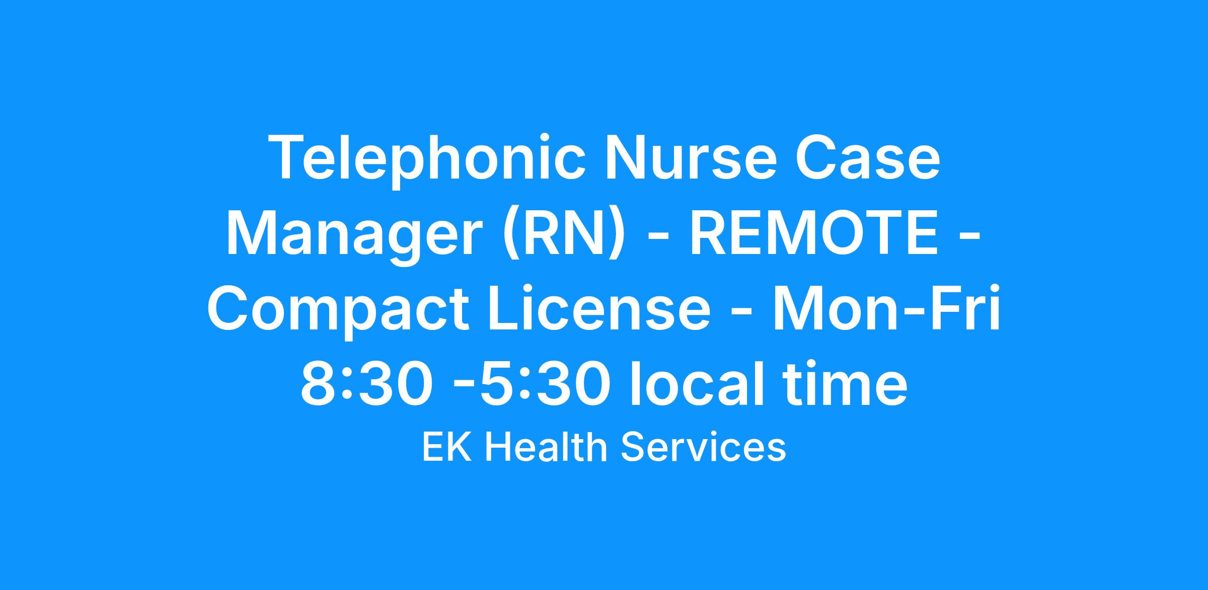 Telephonic Nurse Case Manager (RN) - REMOTE - Compact License - Mon-Fri 8:30 -5:30 local time